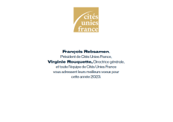 François Rebsamen, Président de Cités Unies France, Virginie Rouquette, Directrice générale, et toute l’équipe de Cités Unies France vous adressent leurs meilleurs voeux pour cette année 2023.