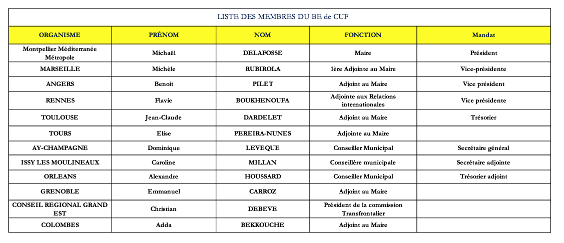 Bureau exécutif de Cités Unies France élu lors du CA du 5 septembre 2024