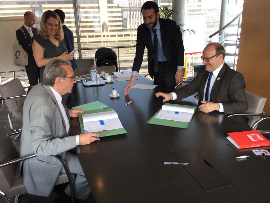 Roland Ries, Président de Cités Unies France, et Rémy Rioux, Directeur général de l’AFD, ont signé, le 11 juillet 2018, une nouvelle convention qui prolonge et amplifie le partenariat stratégique et financier entre CUF et l’AFD.