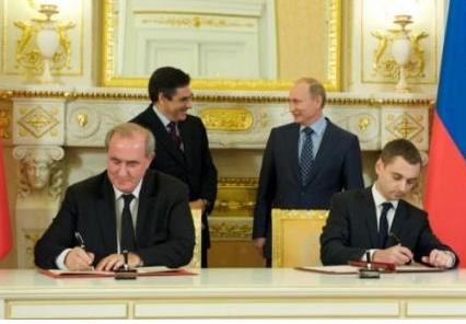 Signature d’un accord relatif au soutien à la coopération décentralisée franco-russe, le 18 novembre 2011, à Moscou