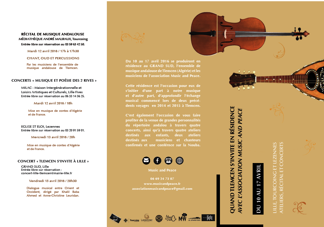Dans le cadre des échanges développés au travers du jumelage entre les villes de Lille et de Tlemcen, 20 musiciens de l’orchestre de Tlemcen en Algérie ont été accueillis par l’association Music and Peace.